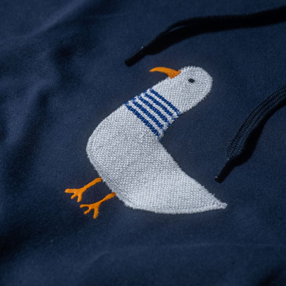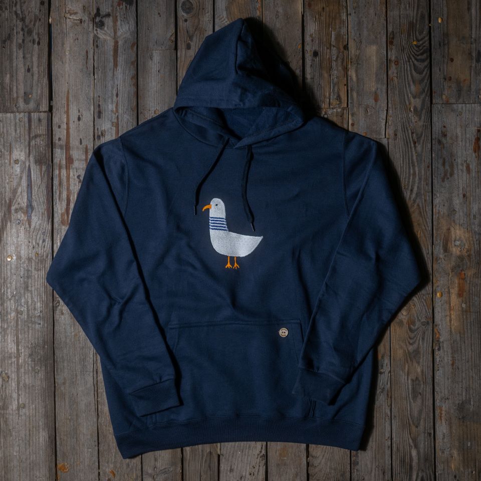 Ένα ακόμα βαμβακερό φούτερ με κουκούλα με απλικέ σχέδιο "Γλάρος", το οποίο είναι φτιαγμένο από αυθεντικό χειροποίητο ύφασμα, υφασμένο σε χειροκίνητο αργαλειό.