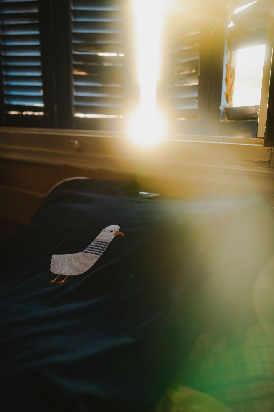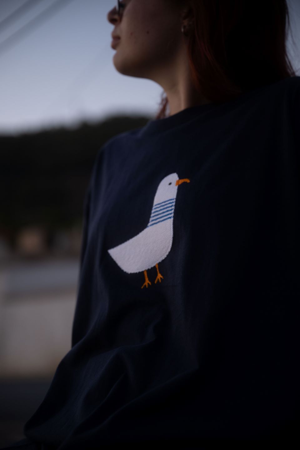 Καθώς ζούμε στον Πόρο, ένα μικρό νησί, οι γλάροι είναι η καθημερινή συντροφιά μας. Δεν θα μπορούσαν παρά να αποτελέσουν την καλύτερη έμπνευση για τις χειροποίητες μπλούζες μας.